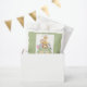 Dê obrigado aos seus convidados chás de fraldas com este bonitinho saco de favores do partido verde do exército que apresenta uma ilustração divertida de animais da selva de bebês (leão, elefante, zebra, macaco e girafa) amontoados num veículo safari e "É um Rapaz!", o nome da mãe e o "Chá de fraldas" na escrita branca. Você também pode personalizar a data do chá e o texto no veículo.