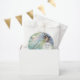 Noites de verão encantadas brilham com uma linda fada dançando pelo prado. Criatura de fantasia em tons de azul, salva e aqua. Ilustração vintage com detalhes personalizados é exatamente o toque certo para temas encantados para chuvveiros, aniversários e outros eventos.