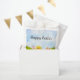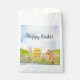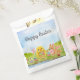 Bright spring colors and playful charm decorate these watercolor Easter party favor bag featuring a fluffy baby chick carrying a basket of colorful Easter eggs while a friendly bunny in a pink bowtie keeps watch nearby. Surrounded by blooming pastel tulips, the cheerful design captures the joyful spirit of the season, adding a festive and whimsical touch to Easter brunches, egg hunts, and spring celebrations.