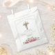 An elegant memorial seed favor bag featuring beautiful sage green eucalyptus on a wooden cross. Personalize it with your loved one’s name, date, and the type of plant. The delicate botanical design of roses and eucalyptus on a simple white background creates a timeless and heartfelt keepsake. A beautiful way to thank guests and share a living memory from the memorial service.