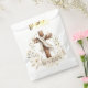 Esta Páscoa temida bolsa de favores tem uma cruz com as palavras "Ele é Risen" em castanho.