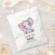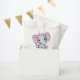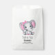 Favorecer as bolsas com uma ilustração de aquarela elefante rosa e fofinha. Ela tem orelhas bonitinhas, cor-de-rosa e bolinhas branca e arco bonito de fita rosa sobre a cabeça.