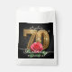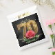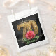 Celebrate a spectacular milestone with these elegant black, gold, and red rose 70th birthday party treat bags. Designed with glamorous gold 3D ornate typography and a stunning romantic red rose against a chic dark background with gold sparkles, these gorgeous guest bags are the perfect finishing touch for her special celebration. Easily change the name to make it unique to the birthday VIP. Ideal for women's seventieth birthday events, red and gold floral party themes, and luxurious milestone celebrations. Give your friends and family a beautiful "thank you" gift to remember an unforgettable evening!