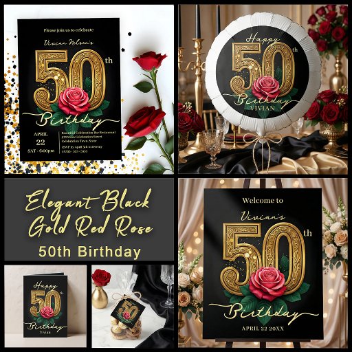 Elegant Black Gold Red Rose 50th Birthday PartyCriado por Kristina Lj Petrovska