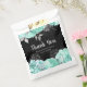Pretty sweet sixteen favor bag with aqua green flowers and silver foliage. The words can be changed to suit your own details or requirements. Would be perfect for a sweet sixteen birthday party.