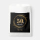 Mala de favor de 50 anos de casamento, preto e ouro elegante. Design apresenta folhas de ouro, número 50 e nomes de caligrafia de script. Clique em personalizar para adicionar seus detalhes ou editar usando a ferramenta design para edição adicional.
