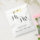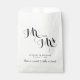 Uma bolsa elegante de favores de casamento que inclui o Sr. e a Sra. com amor é doce de dar um brinde a uma tipografia de escrita negra. Personalize com seus nomes e data de casamento.
