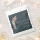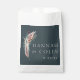 Elementos: Arranjo floral boho moderno incluindo grama pampas, galhos de pinheiro, penas e frutos de azevinho. Fontes serif sofisticadas com acentos de letra cursiva elegante. Cores: verde caçador, esmeralda, azul-teal escuro, verde sempre-vivo, marrom, bege, branco, vermelho, cranberry, marsala. Temas: boho chic, moderno, minimalista, rústico, vintage, inverno, casamento de Natal, boêmio, vinhedo, vinícola. Coleção: Coleção de Casamento Elegante Boho Rústico Pampas & Pine Verde Bege Vermelho Tipo de Produto: Sacola de Lembrança