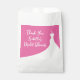 Um vestido de casamento elegante em um fundo fuchsia acentua esta bolsa de presente de chá de panela. Esta é parte da Coleção Elegante de Chás de panela em fuchsia. Se forem necessários elementos de coordenação adicionais, entre em contato conosco em prettyfancyinvites@gmail.com com o seu pedido.