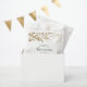 O Elegante Dourado Folha favorece as etiquetas de presentes com caligrafia verde esmeralda e mensagem personalizada de obrigado. A design tem folhas finas desenhadas e folhagem de folha de ouro sólida com confete. Por favor, navegue na minha coleção Dourada Leaf quinceanera ou mande-me uma mensagem para fazer convites, papelaria e dia de decoração de eventos.