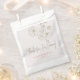 Elegante sacola de agradecimento de chá de noiva floral dourada para o seu brunch de noiva floral. Flores minimalistas em tom dourado com um toque de rosa beije elevam a decoração do seu chá de noiva. Fundo de cor neutra. Personalize para o seu brunch de noiva chá de noiva. Você pode encontrar outros produtos de brunch de noiva e chá de noiva com este design na Coleção Chá de Noiva Brunch Floral Dourada Elegante na loja The Gathering Designs.