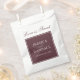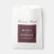 No estilo clássico minimalista, esta bolsa de favores é uma boa escolha para outono ou casamentos no inverno, festas de noivado, chás de panela e outros eventos especiais. Ele tem um quadrado elegante clássico em rico marsala burgundy vermelho com texto personalizado que você pode personalizar com os nomes da noiva e do noivo e a data do casamento, ou outro texto desejado.