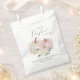 Chá de menina elegante favorece bolsas que apresentam "uma doce abóbora está a caminho" na tipografia de cinzas moles e um roteiro com um inchaço cardíaco e aquarelas de abóboras rosa e creme e buquês florais.