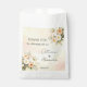 Estas elegantes bolsas florais são uma simples e encantadora adição aos seus suprimentos de casamento. Com pêssego, rosas amarelas e brancas no estilo aquarela, a design romântica é ideal para dias de casamento rústicos, country ou botânicos. Personalizável com seus nomes e data de casamento, as bolsas também exibem a mensagem sincera "Obrigado por comemorar conosco".