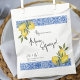 Coordene seu tema de limão e azulejo azul perfeitamente com este saco de lembrancinha personalizado super fofo. Edite o texto para qualquer evento clicando em “personalizar este modelo.” Certifique-se de verificar o resto da coleção Lemon & Mediterranean Tile da EmmyINK para papelaria personalizada e decoração de festa coordenadas!