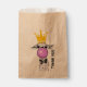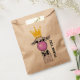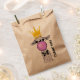 Obrigado a vocês por bolsas com uma lama branca soprando uma grande bolha rosa. Vestindo uma coroa dourada e uma gravata arco preta.