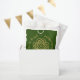 Símbolo em forma de shamrock celta em ouro, em fundo verde, com o texto "Erin Go Bragh ~ Ireland Forever" - Celebre sua Irrisdade!