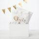 Mande os hóspedes para casa com amor usando esta bolsa neutra de chá de fraldas de favores de ursos de pelúcia. Projetado com um ursinho aquoso macio, balão bege, eucalipto verde, e nome e data personalizáveis, é perfeito para chás neutros de gênero. Preencham-se de doces, mini presentes, ou obrigado-vocês, doces para um charmoso detalhe da festa.