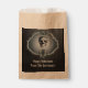 O truque ou o repórter está atento a este esqueleto assustador que aparece num espelho. O fundo do conselho de giz acentua este tipo assustador. Adicione sua própria mensagem de Dia das Bruxas. Saco de excelente de um professor, vizinho, médico, dentista ou para uma festa de férias. Preencha as suas guloseimas de Halloween favoritas. Saco divertido para feiras e carnavais de outono.
