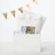 A design apresenta uma fotografia de um esquilo fofo junto com as patas. Ela está em uma paisagem nevada com uma bola de neve entre suas patas. É uma cena absolutamente adorável.