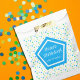 Parabéns com estrelas azuis, amarelas e verdes. Personalizável para qualquer idade.