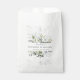 Crie o saco de lembrancinhas perfeito para o seu casamento botânico boêmio moderno, com este lindo design de aquarela botânica de eucalipto verde-azulado pálido, apresentando um fundo de mármore falso Carrera, respingo de aquarela e tipografia de letra manuscrita na moda. Parte de um conjunto de convite de casamento. Copyright Elegant Invites, todos os direitos reservados.