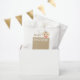 Bebê Cartolina em papel de promoção com a face sorridente de um bebê com um fio de cabelo encaracolado, contra uma área marrom para texto personalizado. © Manhã 6