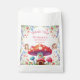 Celebre o primeiro aniversario da sua menina com esse obrigado encantador e personalizado que você favorece bolsas, perfeito para uma fada de primeiro aniversário! Projetadas com delicadas flores silvestres, rosa-pastel e lilás, uma encantadora fada de cogumelos vermelhos com pontos brancos e borboletas e fadas brancas, essas bolsas adicionarão um toque mágico a qualquer festa. Colocado contra um fundo branco nítido, cada saco expressa um "obrigado" sincero aos convidados para se juntarem a este dia especial. Perfeito por encherem-se de doces e pequenos tesouros, este obrigado que vocês privilegiam as bolsas fará uma lembrança memorável para a família e os amigos celebrarem o marco encantador da sua pequena fada.