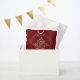 A design original de Destei de um floco de neve decorativo em textura falsa de folha de alumínio ouro amarela numa cor vermelha de fundo. Há também duas áreas de texto personalizáveis. AVISO: O design é uma imagem criada digitalmente que será impressa no produto.