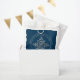 O design original de Destei de um floco de neve decorativo em textura falsa de folha de cinza prateada em uma cor azul de fundo. Há também duas áreas de texto personalizáveis. AVISO: O design é uma imagem criada digitalmente que será impressa no produto.