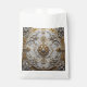 An elegant silver and gold design resembling an opulent ceiling medallion covers this favor bag,