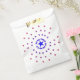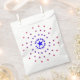 Estrelas em círculos alargados à volta de grandes estrelas centrais. A estrela grande é azul-escuro com estrelas menores sombreando entre roxo e vermelho enquanto se movem para fora.