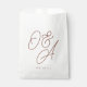 Um belo design de favores de casamento baseado em tipografia que apresenta suas iniciais em letras terracotta de ferrugem com sua data de casamento em letras clássicas de serifa.