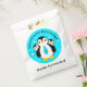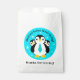 Diga obrigado aos participantes de seus primeiros aniversários com essas bolsas de favores caprichosos, que apresentam adoráveis pinguins de bebês em forma de ovo esportivos necrófagos azuis em um fundo azul-luz estrelado! Design © W.H. Sim. Mais informações em zazzle.com/expressionsoccasions
