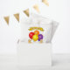 Ofereça um dentro de surpresa para levar para casa, este bonitinho saco de favores de aniversário de criança. A design de fotos e arte digital misturadas apresenta patinhos amarelos opostos na grama com quatro balões coloridos entre eles e acima deles com algum confete flutuando ao redor. Personalize a mensagem no campo modelo ou clique em personalizar para selecionar um estilo de fonte, tamanho e cor preferidos.