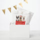 Ilustração de três Bulldog Franceses saindo de uma caixa de correio para cartas para o Papai Noel.