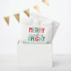 Feliz e Brilho! Saco de festas de férias com tons de rosa e verde.