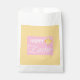 Um pintinho amarelo giro, em fundo rosa, com a saudação de "Felz pascoa" e uma borda amarela personalizada.