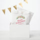 Férias personalizadas favoreçam bolsas com uma na moda, moderna aquarela de folhas verdes e bagas vermelhas com sua saudação e informações em caracteres quicos. CORRESPONDENTE a itens na nossa coleção.