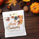 Essas lindas bolsas de lembrança para festa de Ação de Graças empresarial apresentam uma bela borda de folhas de outono marrons e laranjas com abóboras laranjas ao redor do texto personalizado da sua empresa. Personalize os presentes da sua festa empresarial elegante para o seu grupo profissional com belas cores de outono.