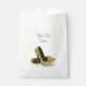 Sacolas de lembrança para festa de aniversário de sapato de salto alto dourado feminino com sapatos de salto alto dourados brilhantes e brilho espalhado. Você pode personalizar com seu texto no estilo de fonte e cor de sua escolha.