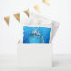 Sacos de lembrancinhas de festa de aniversário de criança com tema de golfinho - conjunto de 50. Agradeça aos convidados da festa com um saco de guloseimas com tema marinho. Uma foto subaquática de golfinho em azul brilhante cobre a frente dos sacos de papel branco. O texto ondulado é fácil de personalizar com uma curta mensagem de “agradecimento”. Encha com guloseimas e distribua para crianças e adultos.
