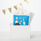 Festa de aniversário fantástica favorece bolsas para crianças. Design de diversão para celebrar na beco da boliche. Adicione seu próprio texto personalizado para garoto ou garota. Cor de fundo azul ou personalizada. Boliche de pinos de e design de golpe de bola. Perfeito por agradecer seus convidados.