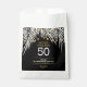 Crie a 50ª festa de aniversário a favor das bolsas personalizadas com seu nome e idade, com frondes de palmeiras brancas e fios de luz em um fundo preto. Consulte os itens CORRESPONDENTES na nossa coleção.