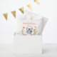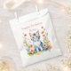 Um gatinho listrado doce rodeado por flores cor-de-rosa e coral ilustração aquosa festa de aniversário favorece bolsas.