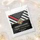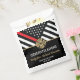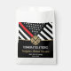 Este design apresenta uma bandeira de bombeiros com listras pretas e brancas, e uma faixa fina vermelha também. "Parabéns" e um distintivo de bombeiro fica acima do nome do bombeiro graduado. Este design também funciona muito bem para bombeiros aposentados, tenentes ou chefes. Celebre com estilo!