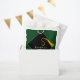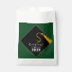 Festa de formatura favorece presentes com boné preto clássico e tassel de ouro sobre fundo verde. Editar texto para adicionar ano de classe de mais velho.