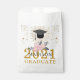 Guardanapos simples de festa de formatura com boné de tipografia decorada floral e tipo ouro num saco de favelas branco para os seus convidados, quer pessoalmente, quer conduzindo por uma festa de formando. Tipografia simples e minimalista e formando boné com raios de ouro.