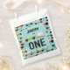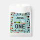 A parte do primeiro aniversario com o tema de racecar Fast ONE favorece as bolsas. Carros de corrida divertidos para a primeira festa de aniversário de uma criança.