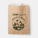 Um design desenhado à mão featuring ilustrações de tema de acampamento de festa de solteira. Este design de fim de semana de acampamento bach verde e branco é ideal para fins de semana de acampamento de luxo de festa de solteira, festas de solteira de viagem de meninas acampadas em destinos de montanha, floresta ou lago.